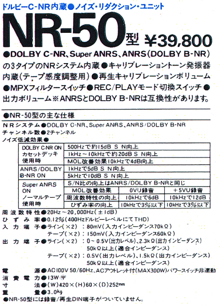 ● NR-50の仕様 (カタログ(1981年6月)より)