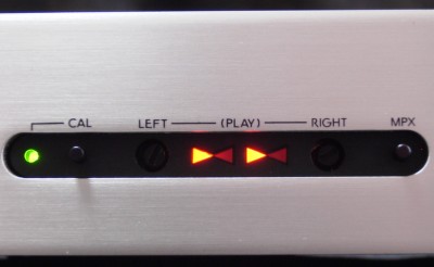 CAL信号発振器とレベル調整用インジケーター、FM放送の19kHzパイロット信号フィルター(MPX)スイッチが並んでいます。