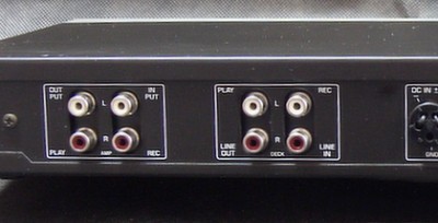 左側2チャンネルをプリメインアンプへ、右側2チャンネルをカセットデッキにつなげます。