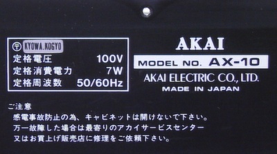 KYOWA KOGYOは、東芝製品の電気用品取締法認定の際に使われていた会社なので、AX-10はほぼ100%東芝製と見てよいでしょう。