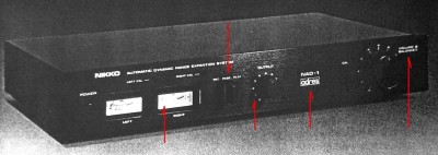 左はカタログに掲載されていた画像ですが、adresロゴが白黒反転だったり、MODEとOUTPUTが左右逆だったり、メーターが白地だったりと、実機とかなり異なるのが謎です。